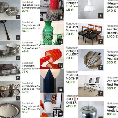 — typing a few search words into eBay Kleinanzeigen (eBay Marketplace), seeing what might appear: a 70s glass table, a forgotten Thonet chair, maybe a set of chrome candleholders that look better in the photo than they probably do in real life.